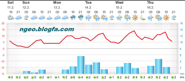 متوگرام ( نمودار هواشناسی )(نمودار پیش بینی بارش و دما) نیشابور در هفته آخر بهمن1395