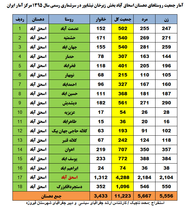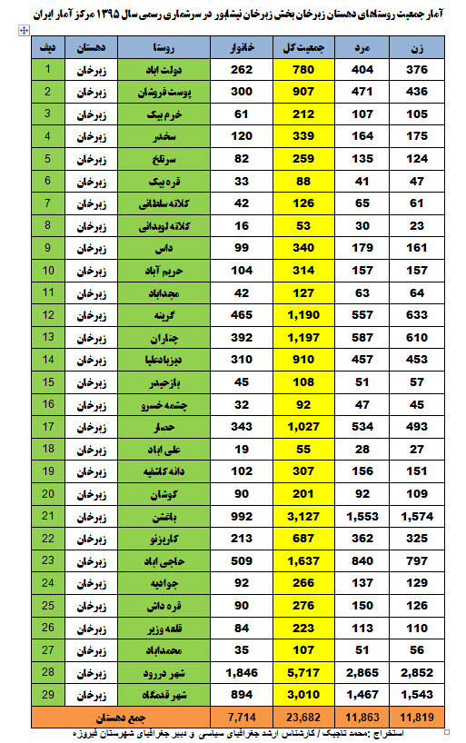 آمار جمعیت روستاهای دهستان غزالی بخش میان جلگه نیشابور در سرشماری سال 1395