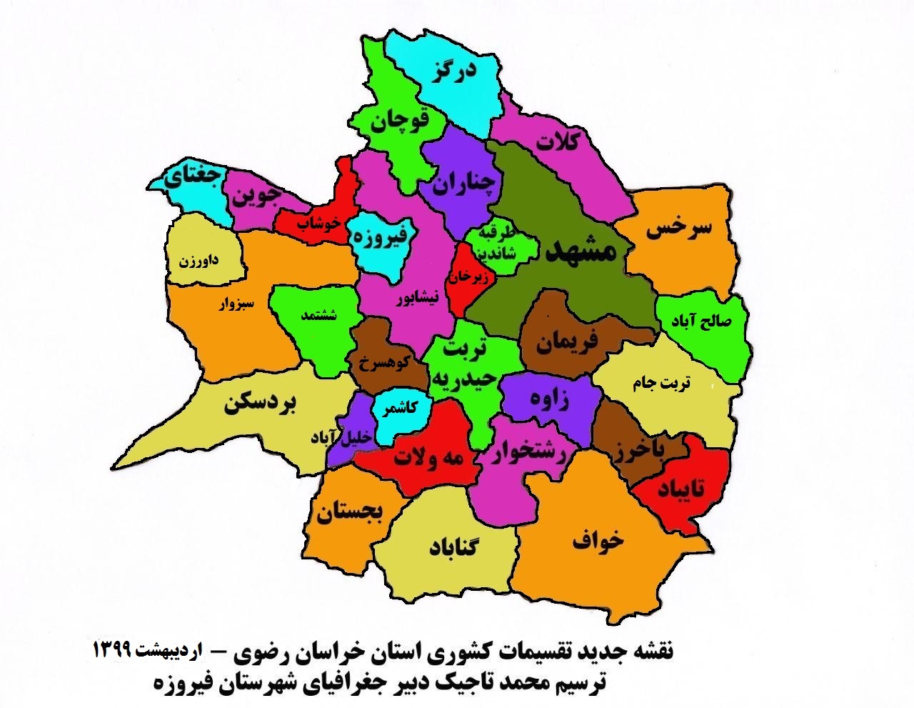 نقشه سیاسی جدید استان خراسان رضوی